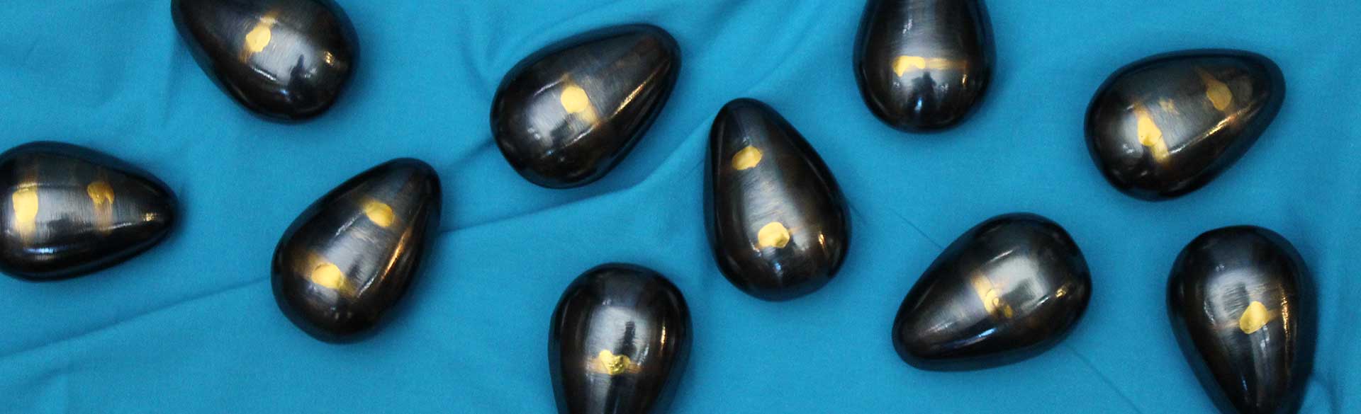SongPods are tear-drop shaped to fit the human palm. When gently shaken – Songpods produce a serene echoing ring and lingering vibration that soothes the spirit.